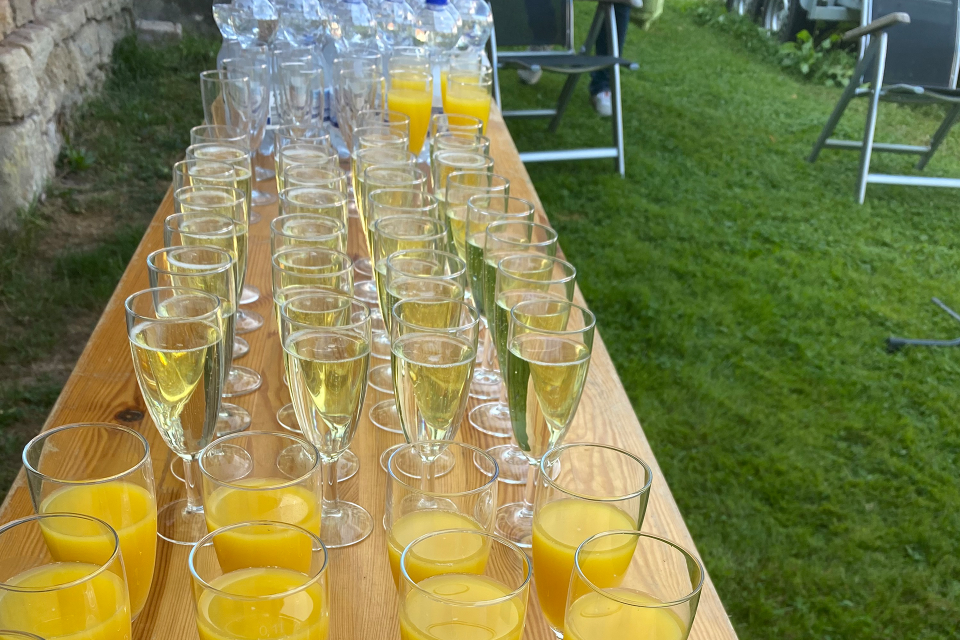 Den Auftakt bildete ein stimmungsvoller Sektempfang auf dem Hof Ziegenbein, bei dem wir bei bestem Wetter gemeinsam auf einen wunderbaren Abend anstoßen durften und schöne Gespräche führen konnten.